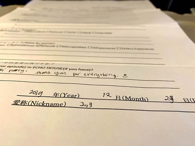 When Qorrie-san’s close friend had fever, she cared of her a lot. She is very kind person and she always has positive atmosphere in ECHO HOUSE.